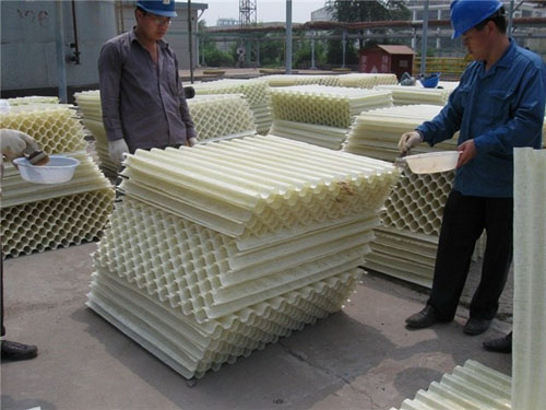 折波填料具有重量輕、便于安裝、耐化學(xué)性能好、冷卻效率高、使用范圍廣等特點(diǎn),是方形橫流冷卻塔理想的淋水填料。
